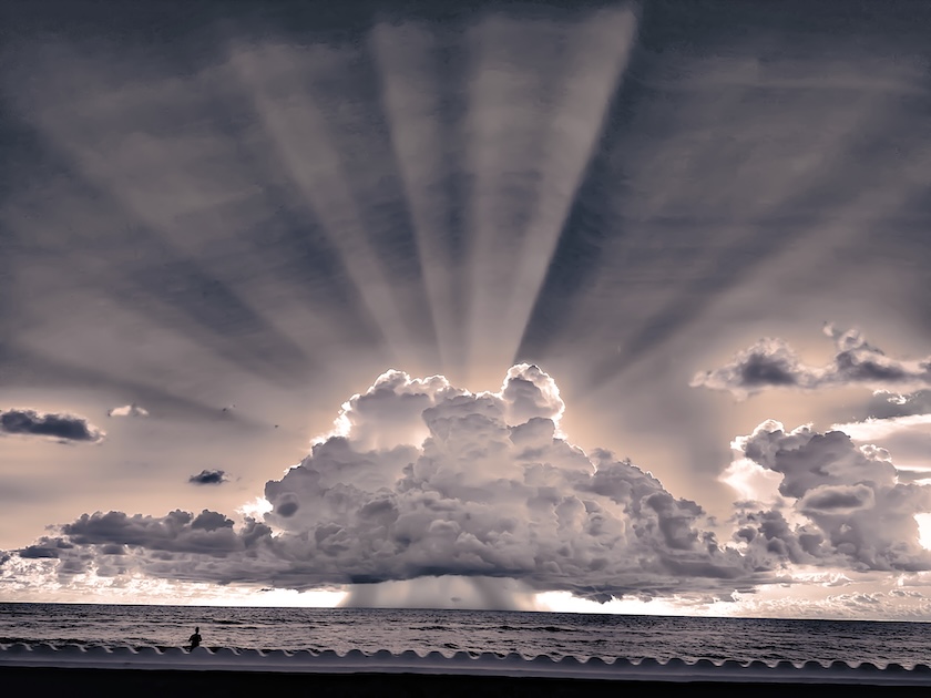 I see the sun rise over the ocean every morning during my ride to school, and this photo was inspired by those sunrises. They look different every morning; sometimes there's rain and wind-chopped waves or gloomy clouds in the distance, but somehow the sun always manages to poke through. I took this photo on one such morning and edited it to capture how I see even the gloomiest sunrise: as a reminder that, no matter how tired or stressed I am, the sun is always going to be a bright light that guides me.